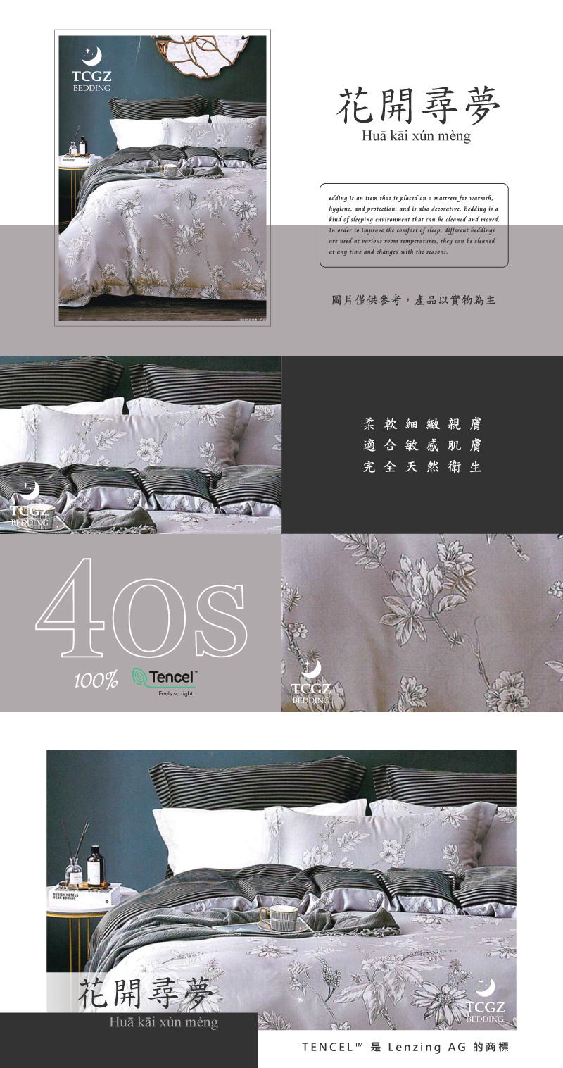 Tencel天絲™萊賽爾纖維製成的 100%40支 【花開尋夢】 舖棉床罩舖棉兩用被七件式組