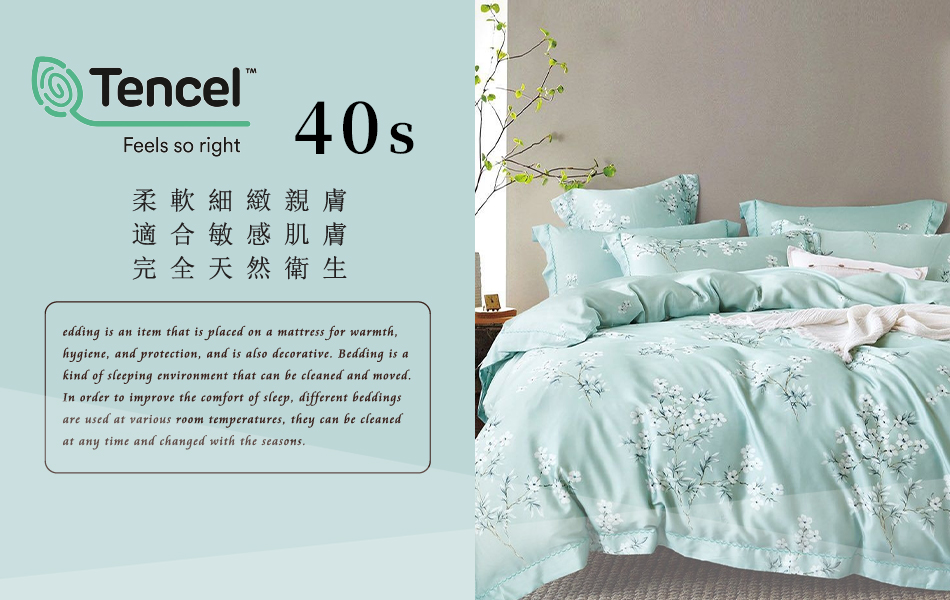 Tencel天絲™萊賽爾纖維製成的 100%40支 【花雨露】 鋪棉床包舖棉兩用被四件式組-40aa