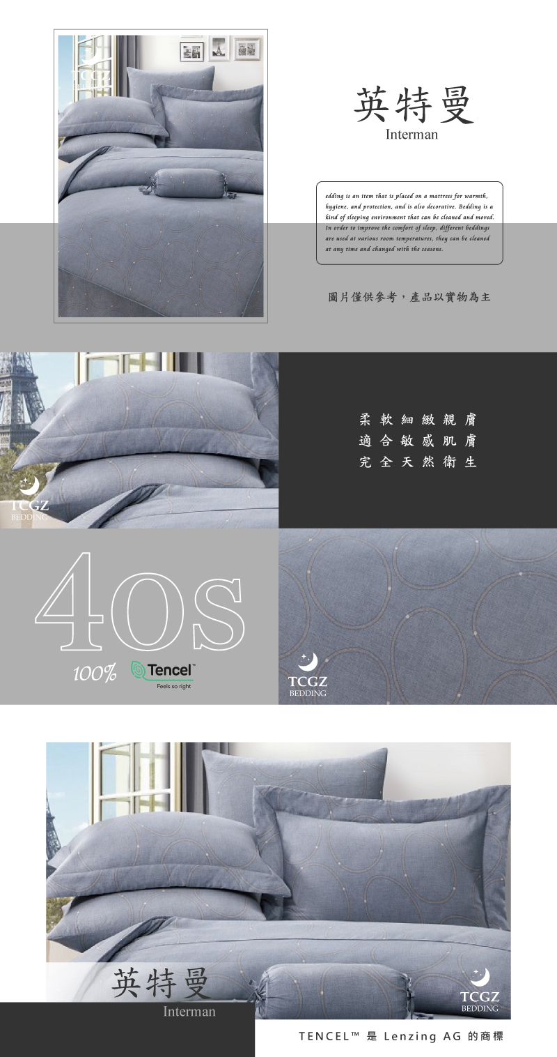 Tencel天絲™萊賽爾纖維製成的 100%40支 【英特曼】 薄床包舖棉兩用被四件式組