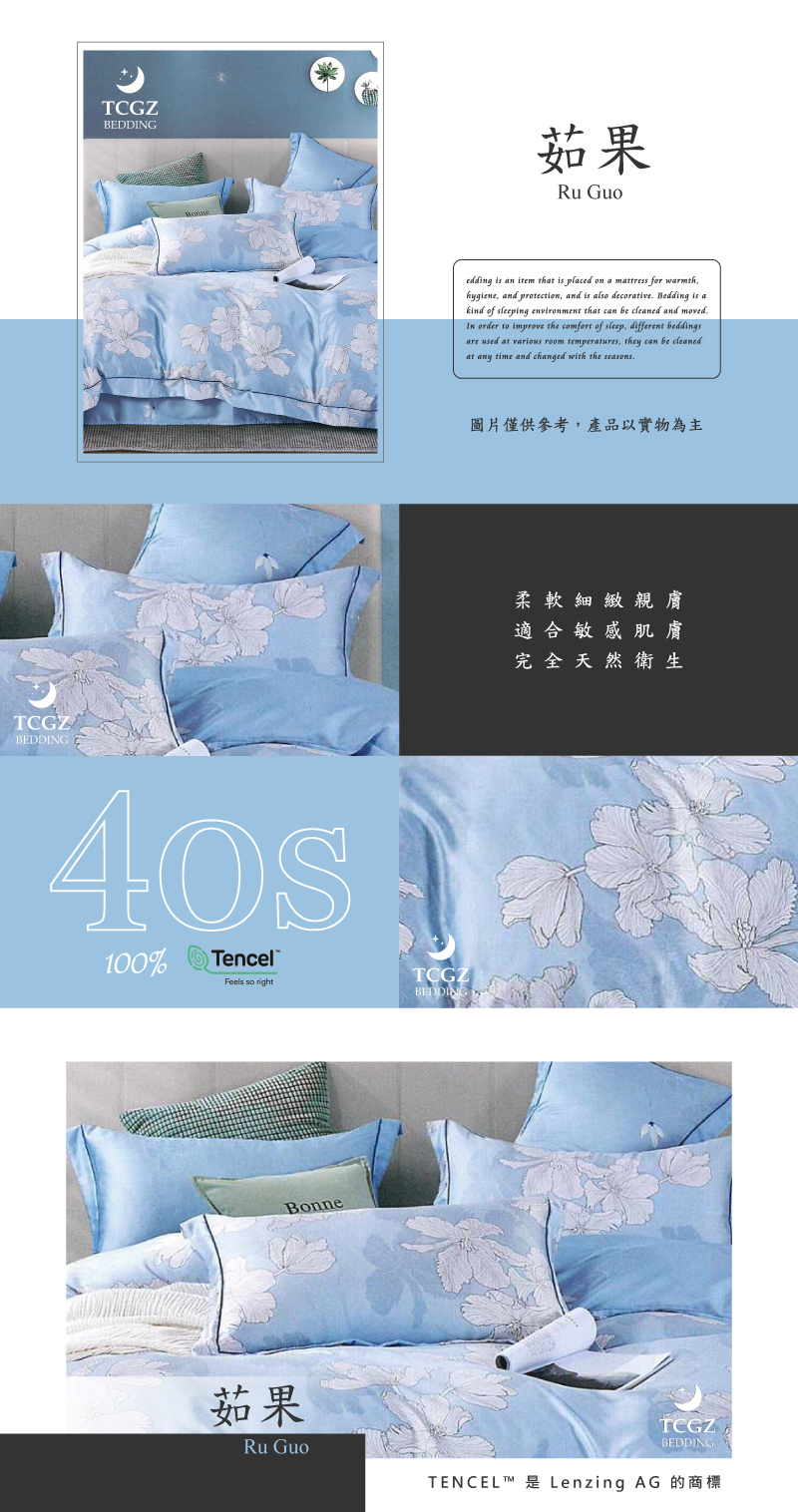 Tencel天絲™萊賽爾纖維製成的 100%40支 【茹果】 舖棉床罩舖棉兩用被七件式組