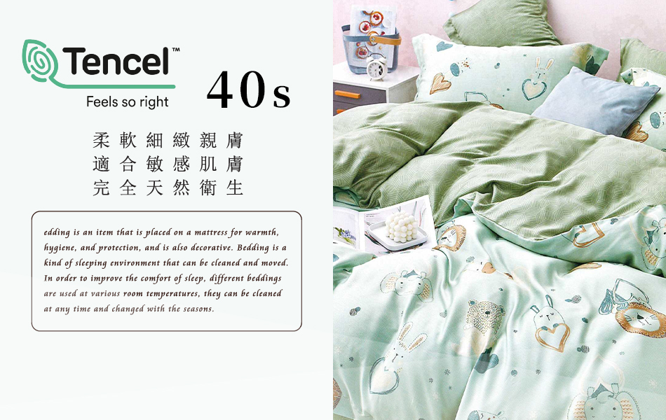 Tencel天絲™萊賽爾纖維製成的 100%40支 【萌寵園】 鋪棉床包舖棉兩用被四件式組-40aa