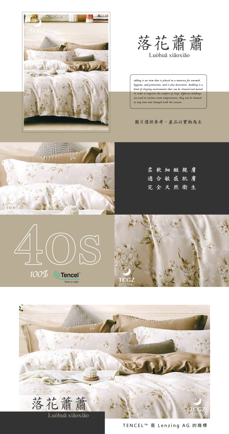 Tencel天絲™萊賽爾纖維製成的 100%40支 【落花蕭蕭】 舖棉床罩舖棉兩用被七件式組