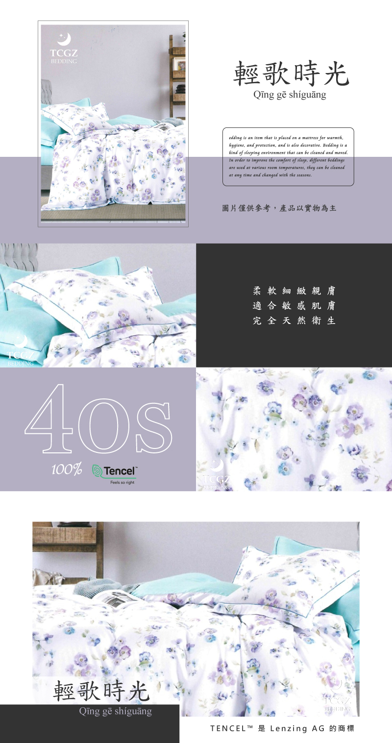 Tencel天絲™萊賽爾纖維製成的 100%40支 【輕歌時光】 舖棉床罩舖棉兩用被七件式組