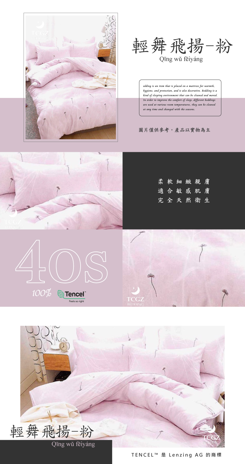 Tencel天絲™萊賽爾纖維製成的 100%40支 【輕舞飛揚-粉】 薄床包舖棉兩用被四件式組