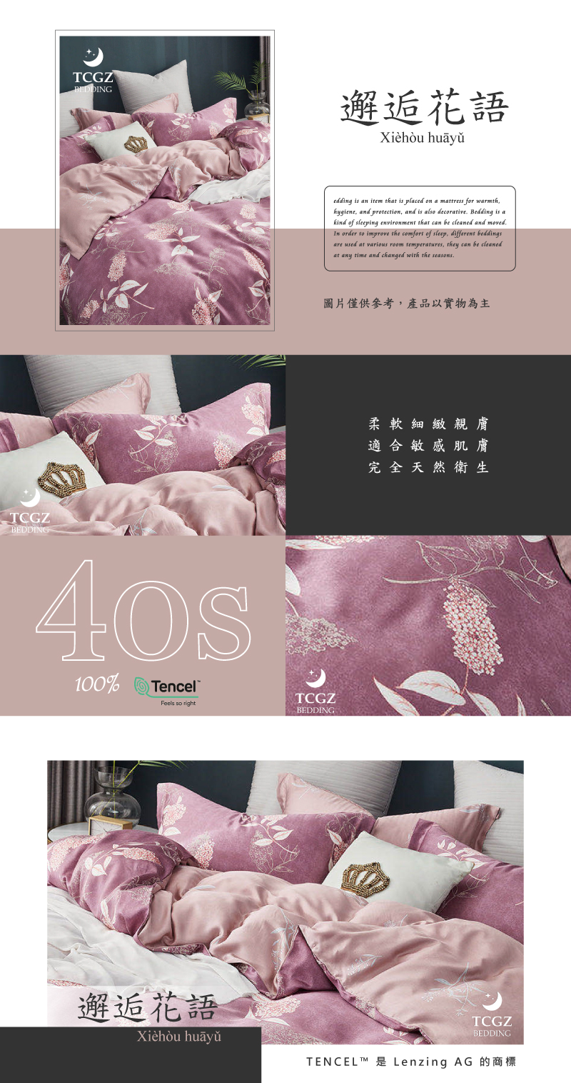 Tencel天絲™萊賽爾纖維製成的 100%40支 【邂逅花語】 薄床包舖棉兩用被四件式組