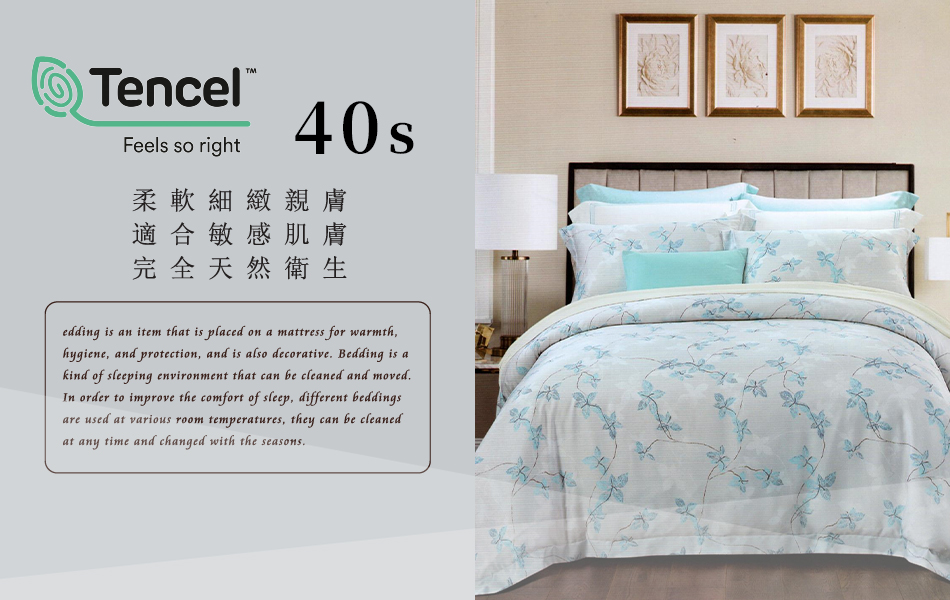 Tencel天絲™萊賽爾纖維製成的 100%40支 【隨風飄舞】 鋪棉床包舖棉兩用被四件式組-40aa