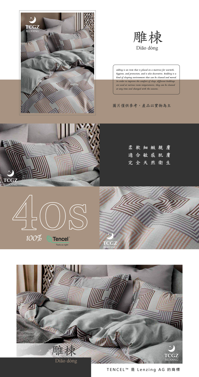 Tencel天絲™萊賽爾纖維製成的 100%40支 【雕棟】 舖棉床罩舖棉兩用被七件式組