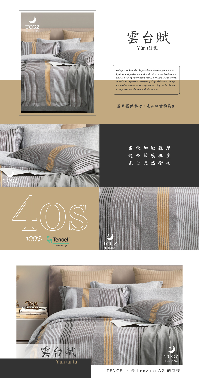 Tencel天絲™萊賽爾纖維製成的 100%40支 【雲台賦】 舖棉床罩舖棉兩用被七件式組