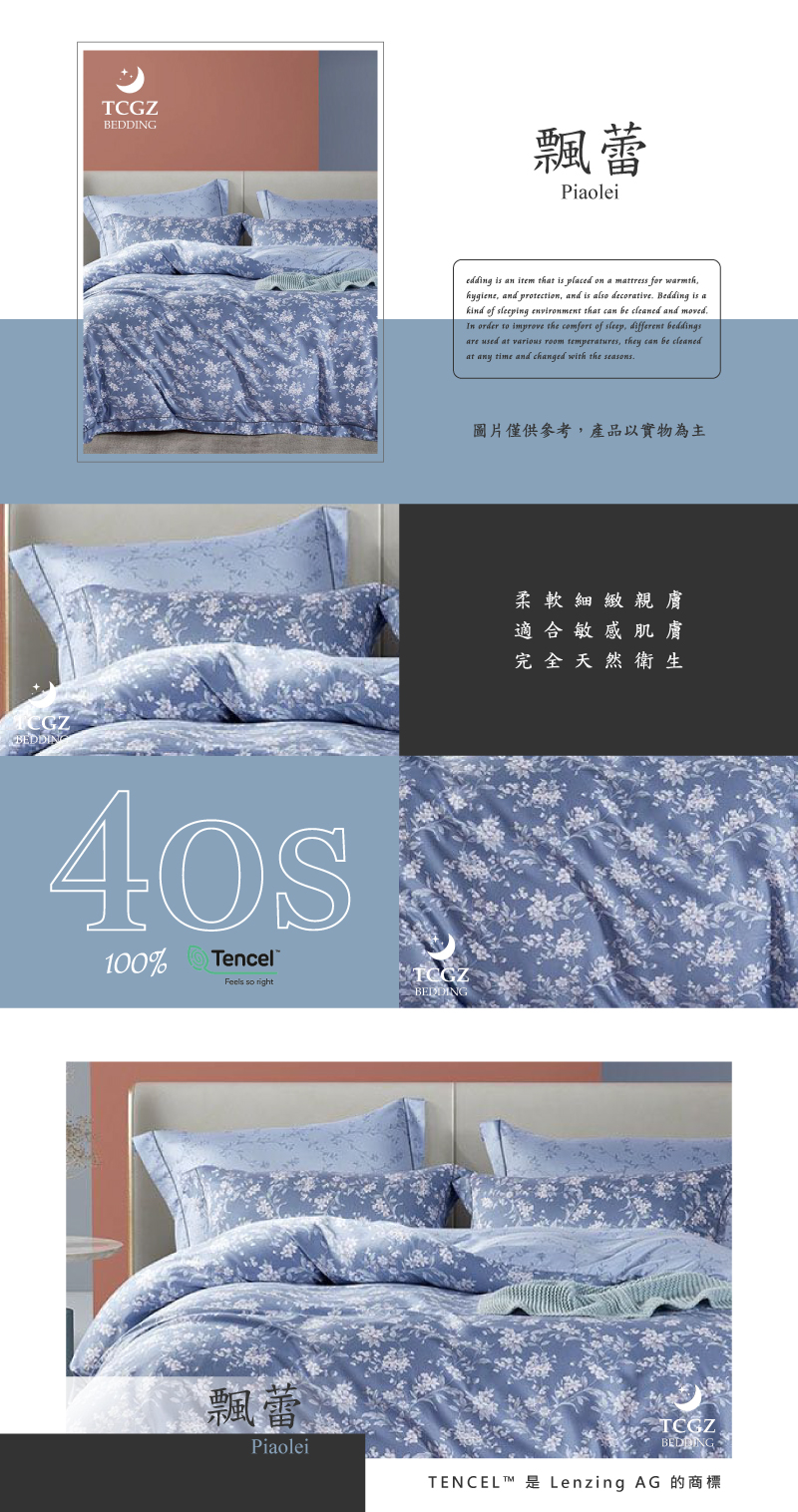 Tencel天絲™萊賽爾纖維製成的 100%40支 【飄蕾】 舖棉床罩舖棉兩用被七件式組
