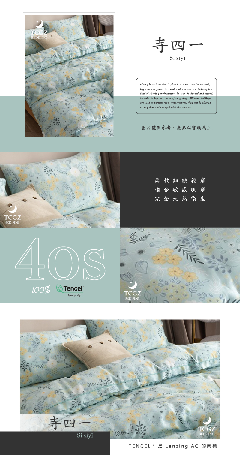 Tencel天絲™萊賽爾纖維製成的 100%40支 【441】 薄床包舖棉兩用被四件式組