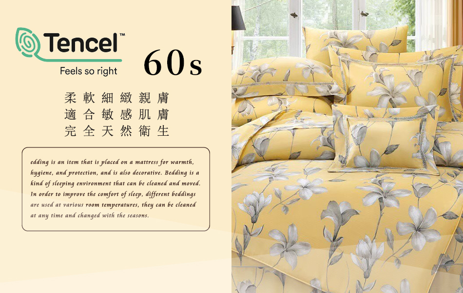 Tencel天絲™萊賽爾纖維製成的 100%60支 【勒諾瓦-黃】 薄床包舖棉兩用被四件式組-60ab
