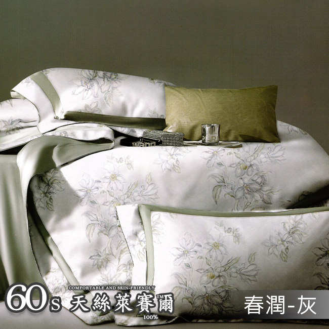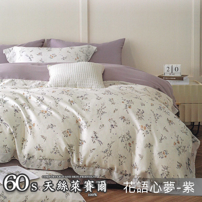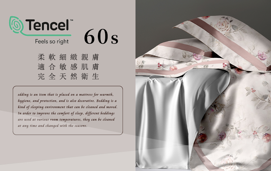 Tencel天絲™萊賽爾纖維製成的 100%60支 【南枙-粉】 薄床包舖棉兩用被四件式組-60ab