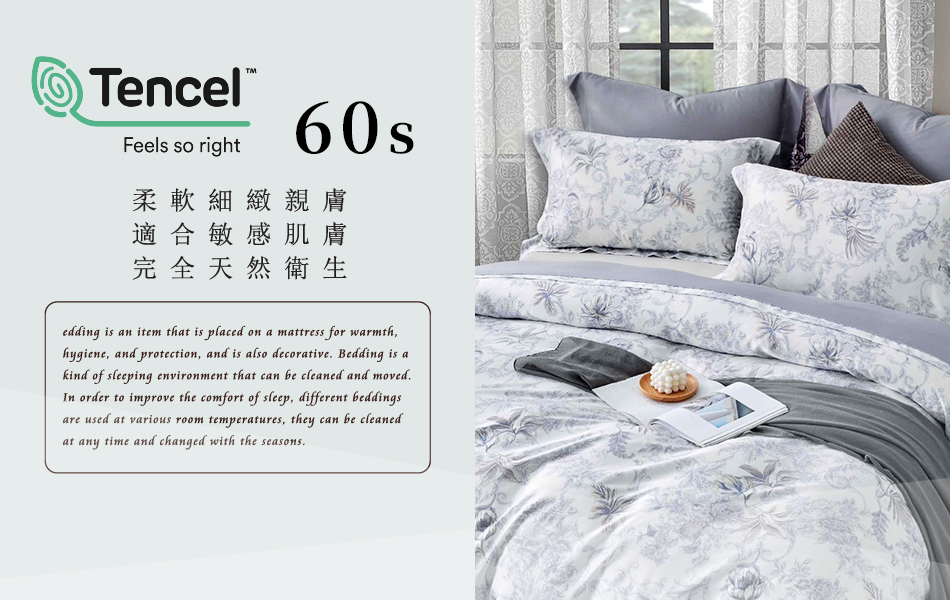 Tencel天絲™萊賽爾纖維製成的 100%60支 【坦佩雷】 鋪棉床包舖棉兩用被四件式組-60aa