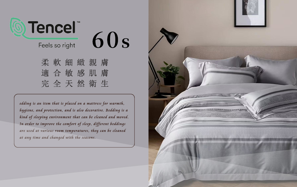 Tencel天絲™萊賽爾纖維製成的 100%60支 【慕希-2】 薄床包舖棉兩用被四件式組-60ab
