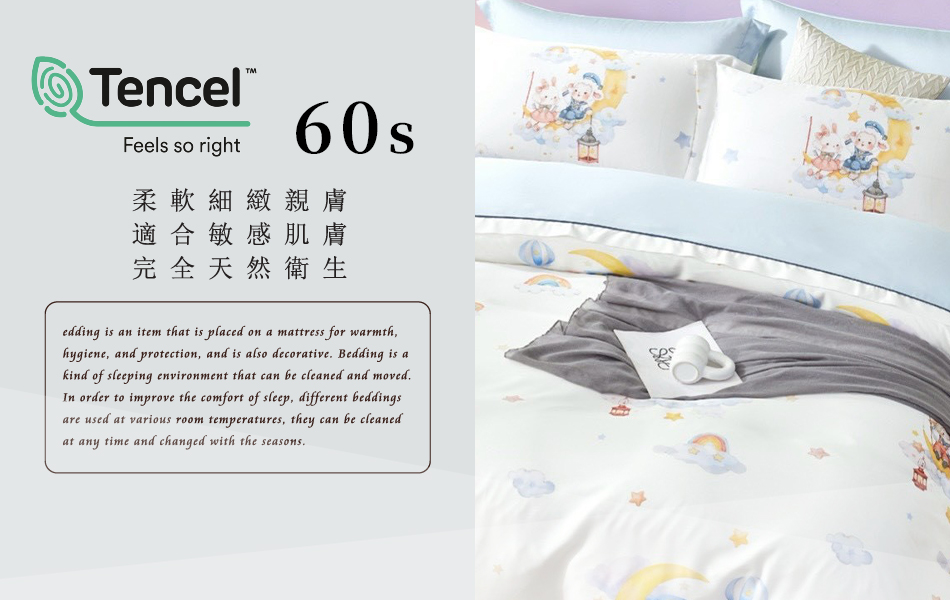 Tencel天絲™萊賽爾纖維製成的 100%60支 【星月萌兔-藍】 鋪棉床包舖棉兩用被四件式組-60aa (複製)
