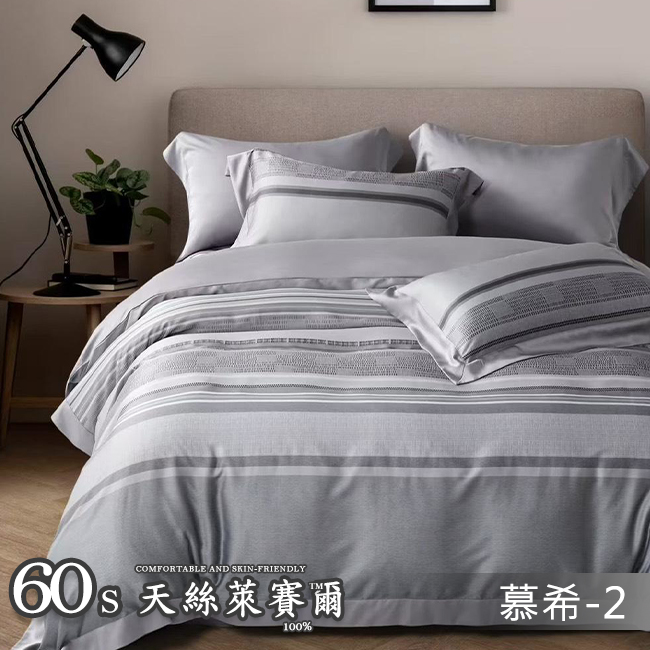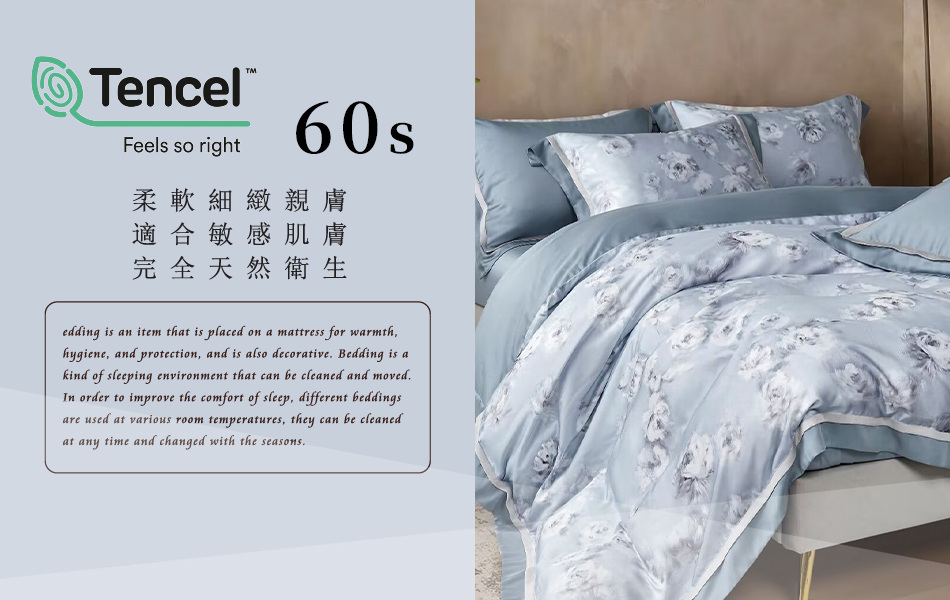Tencel天絲™萊賽爾纖維製成的 100%60支 【朝顏-藍】 薄床包舖棉兩用被四件式組-60ab