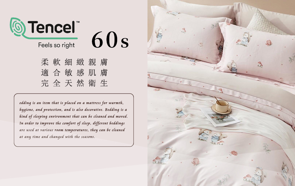 Tencel天絲™萊賽爾纖維製成的 100%60支 【果栗童話-粉】 舖棉床罩舖棉兩用被七件式組-60a7