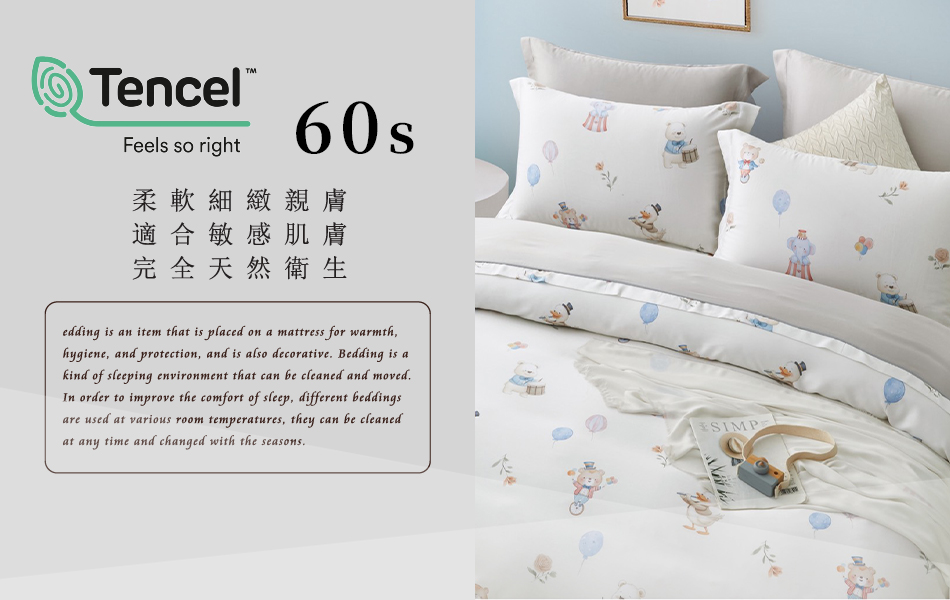 Tencel天絲™萊賽爾纖維製成的 100%60支 【派對樂園】 鋪棉床包舖棉兩用被四件式組-60aa