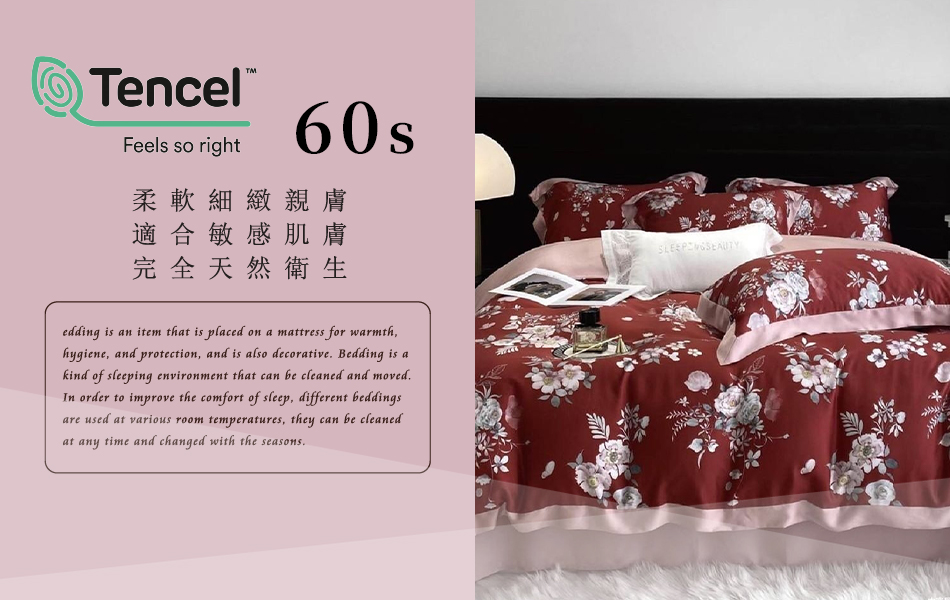 Tencel天絲™萊賽爾纖維製成的 100%60支 【甜茶-紅】 鋪棉床包舖棉兩用被四件式組-60aa