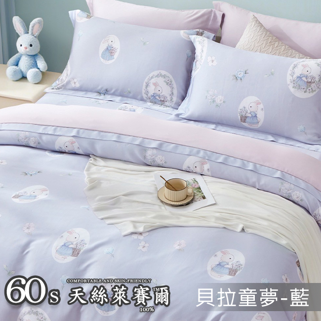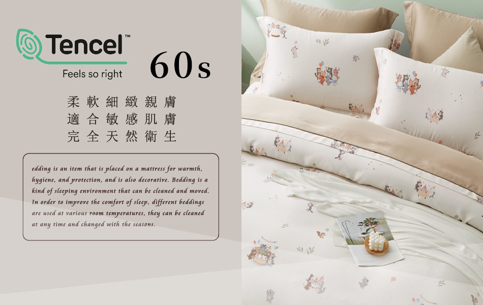 Tencel天絲™萊賽爾纖維製成的 100%60支 【生日樂樂】 鋪棉床包舖棉兩用被四件式組-60aa