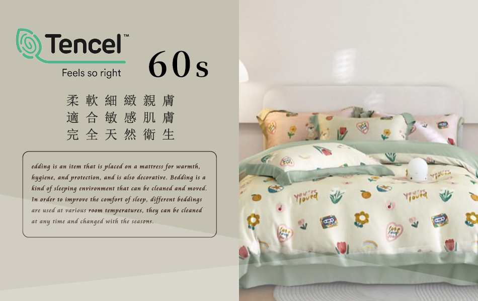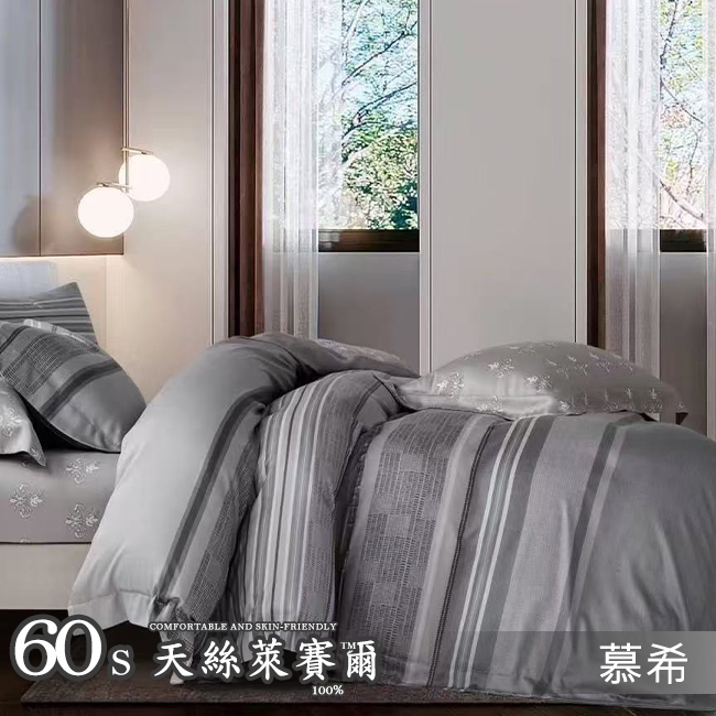 Tencel天絲™萊賽爾纖維製成的 100%60支 【碧秋黃-青灰】 舖棉床罩舖棉兩用被七件式組-60a7