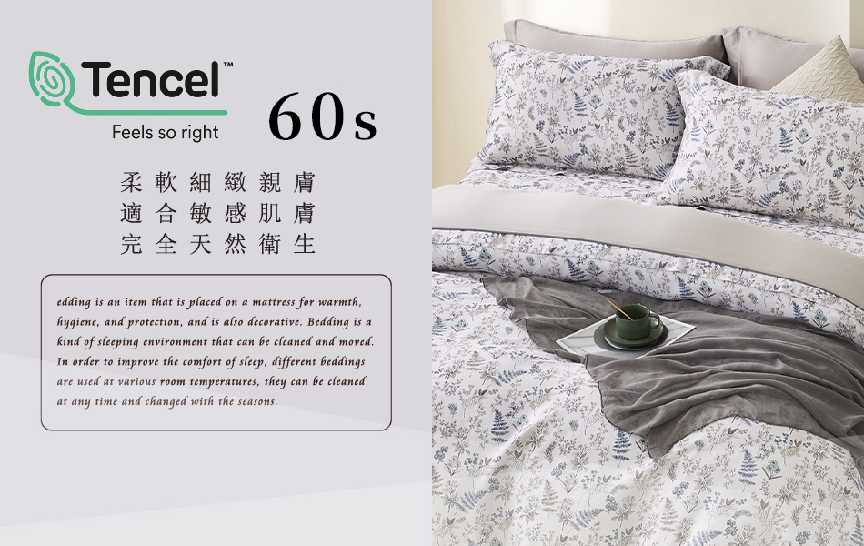 Tencel天絲™萊賽爾纖維製成的 100%60支 【花影序章】 舖棉床罩舖棉兩用被七件式組-60a7
