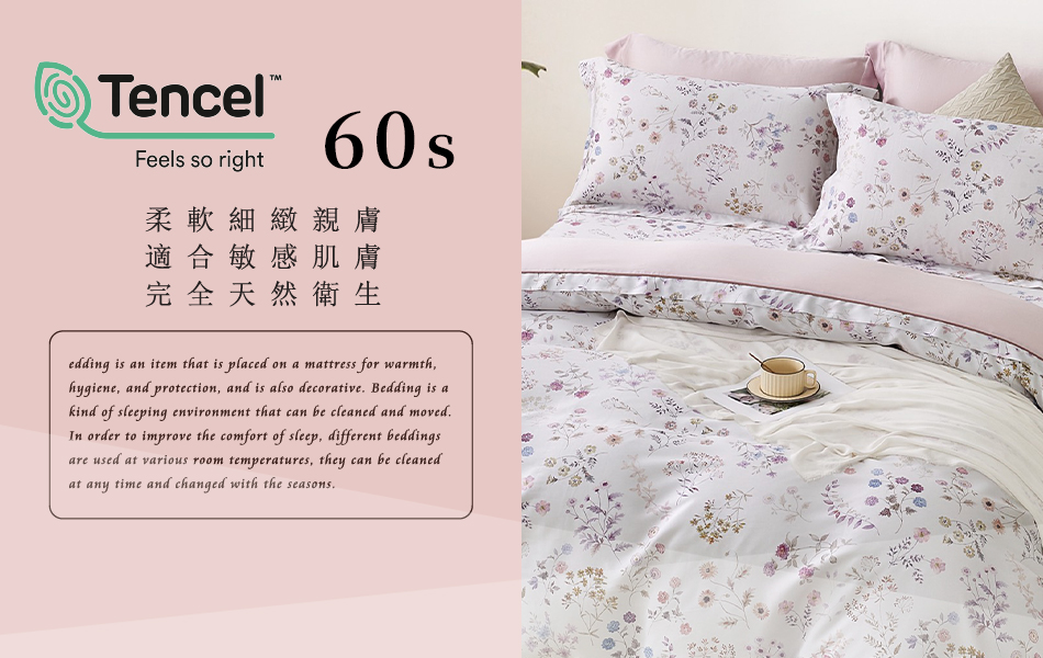 Tencel天絲™萊賽爾纖維製成的 100%60支 【花色冉冉】 舖棉床罩舖棉兩用被七件式組-60a7