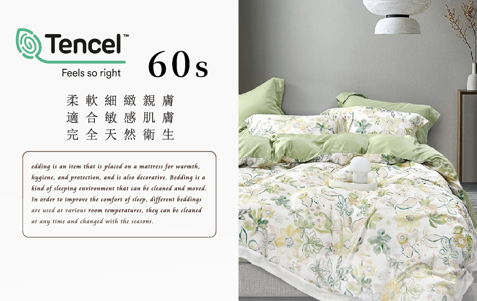 Tencel天絲™萊賽爾纖維製成的 100%60支 【茯苓】 舖棉床罩舖棉兩用被七件式組-60a7