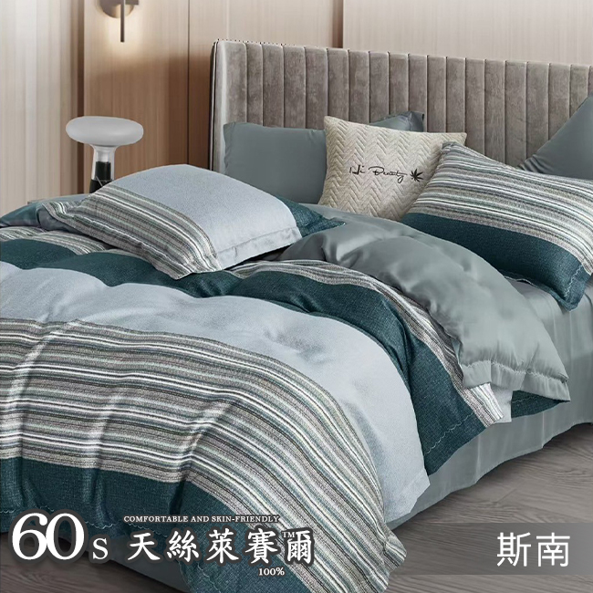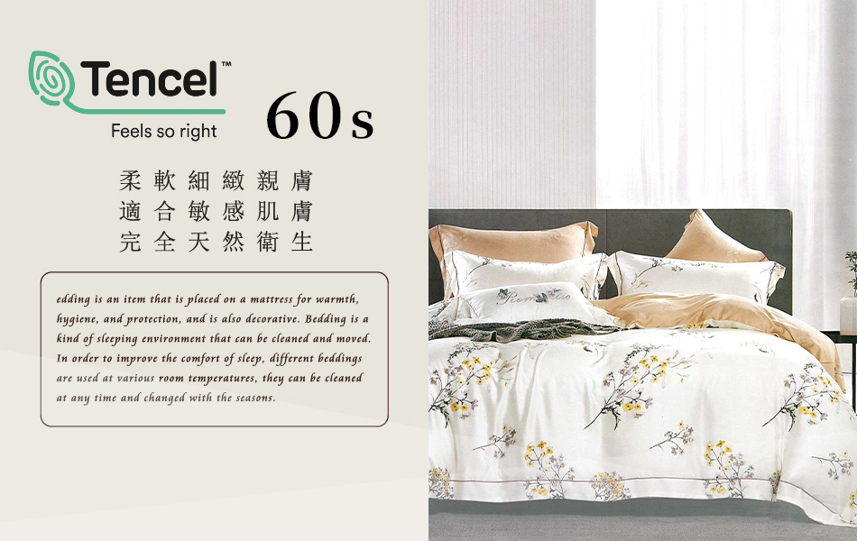 Tencel天絲™萊賽爾纖維製成的 100%60支 【詩雨話-白】 舖棉床罩舖棉兩用被七件式組-60a7