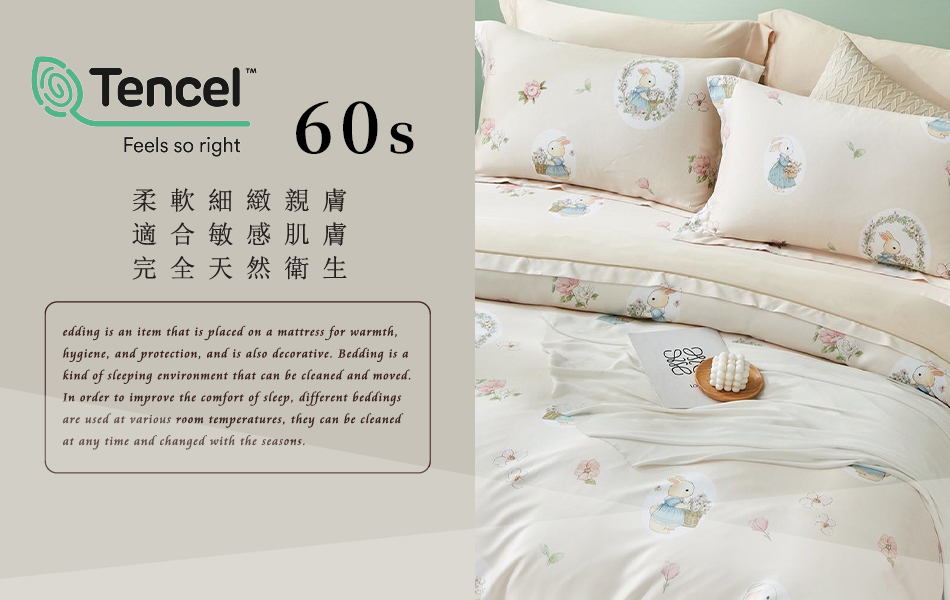 Tencel天絲™萊賽爾纖維製成的 100%60支 【貝拉童夢-米】 舖棉床罩舖棉兩用被七件式組-60a7