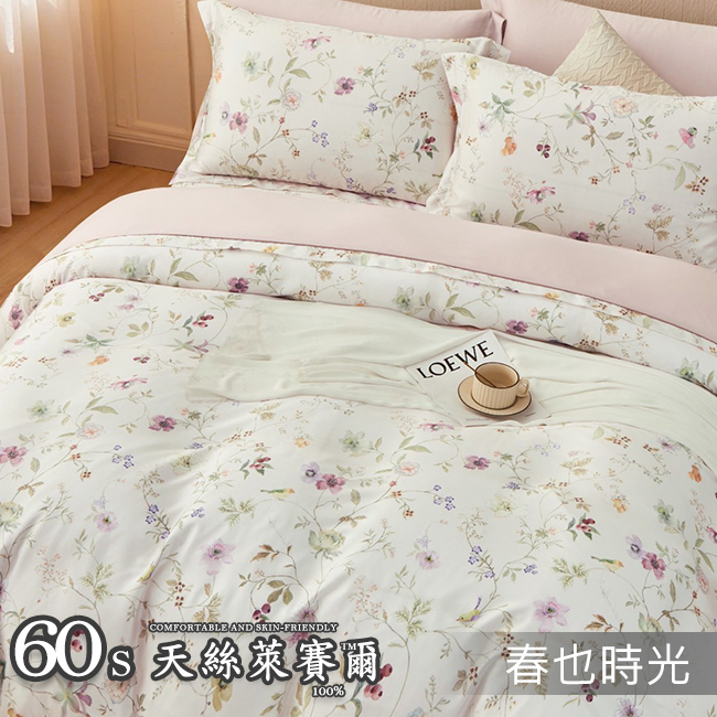 Tencel天絲™萊賽爾纖維製成的 100%60支 【香頌花語】 舖棉床罩舖棉兩用被七件式組-60a7