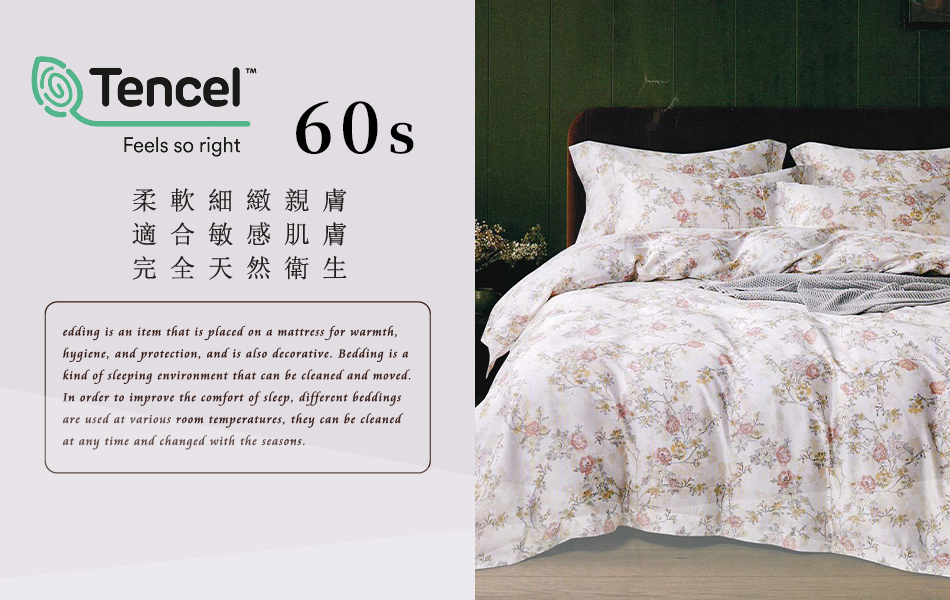 Tencel天絲™萊賽爾纖維製成的 100%60支 【馨苑】 鋪棉床包舖棉兩用被四件式組-60aa