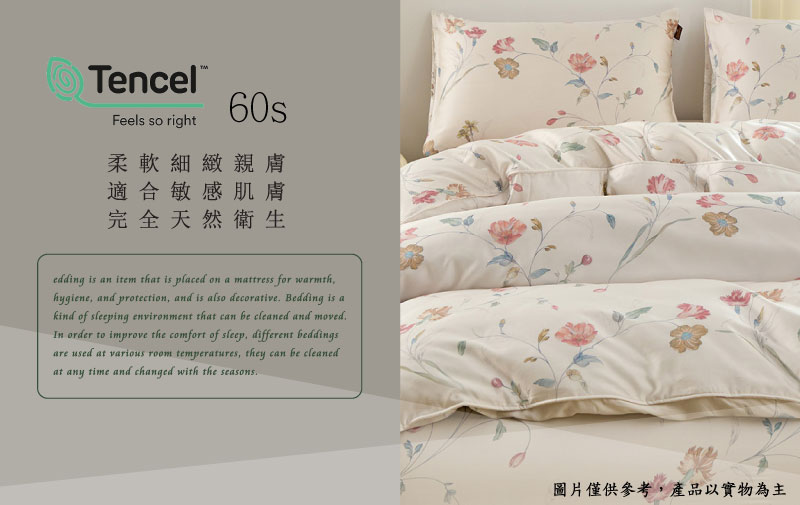 Tencel天絲™萊賽爾纖維製成的 100%60支 【6051】 薄床包舖棉兩用被四件式組