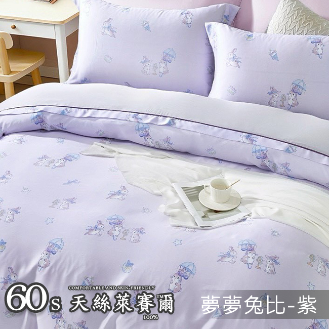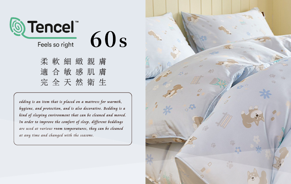 Tencel天絲™萊賽爾纖維製成的 100%60支 【6055】 薄床包舖棉兩用被四件式組-60ab