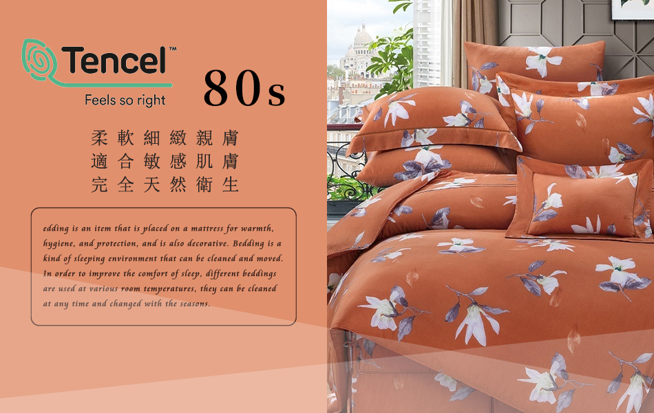 Tencel天絲™萊賽爾纖維製成的 100%80支 【卡莉帕-橘】 舖棉床罩舖棉兩用被七件式組-80a7