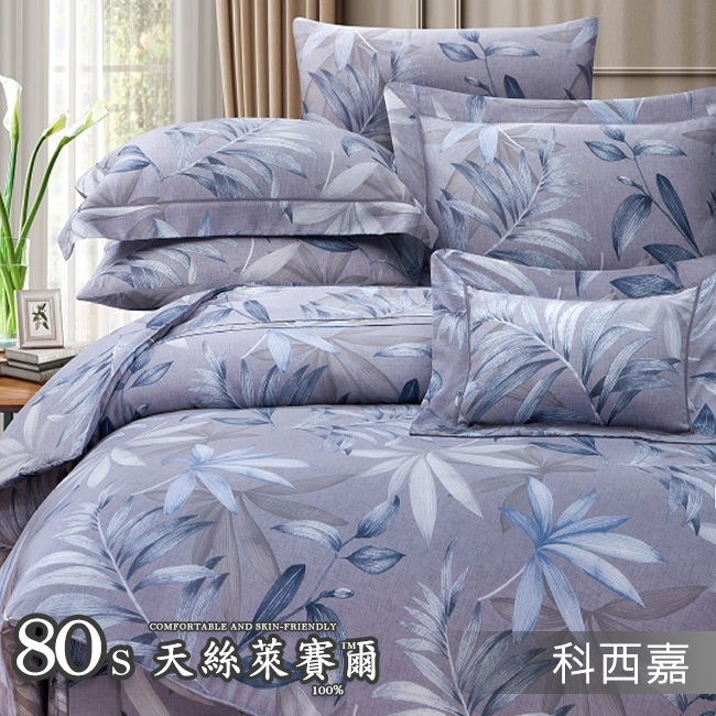 Tencel天絲™萊賽爾纖維製成的 100%80支 【卡莉帕-粉】 薄床包舖棉兩用被四件式組-80ab