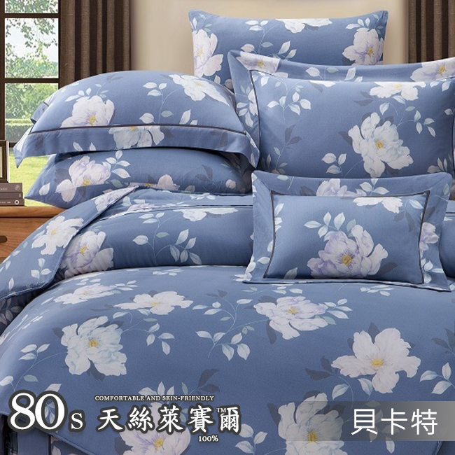 Tencel天絲™萊賽爾纖維製成的 100%80支 【司卡蒂】 薄床包舖棉兩用被四件式組-80ab