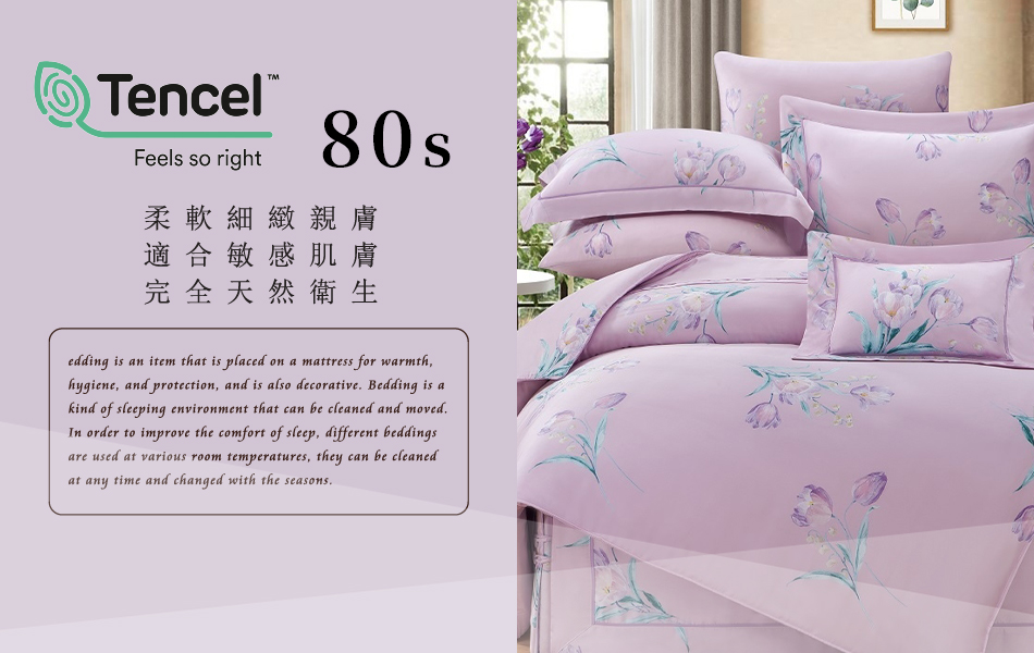 Tencel天絲™萊賽爾纖維製成的 100%80支 【愛茉詩】 舖棉床罩舖棉兩用被七件式組-80a7