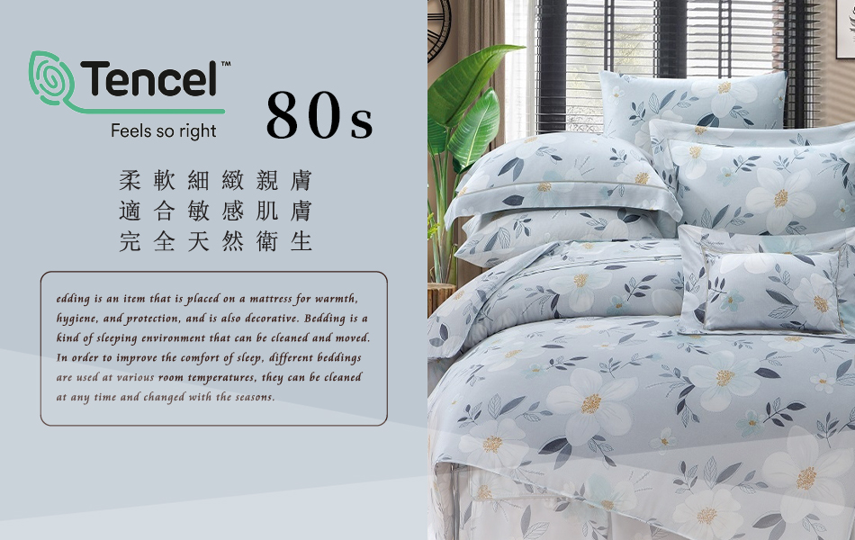 Tencel天絲™萊賽爾纖維製成的 100%80支 【米瑟斯】 舖棉床罩舖棉兩用被七件式組-80a7
