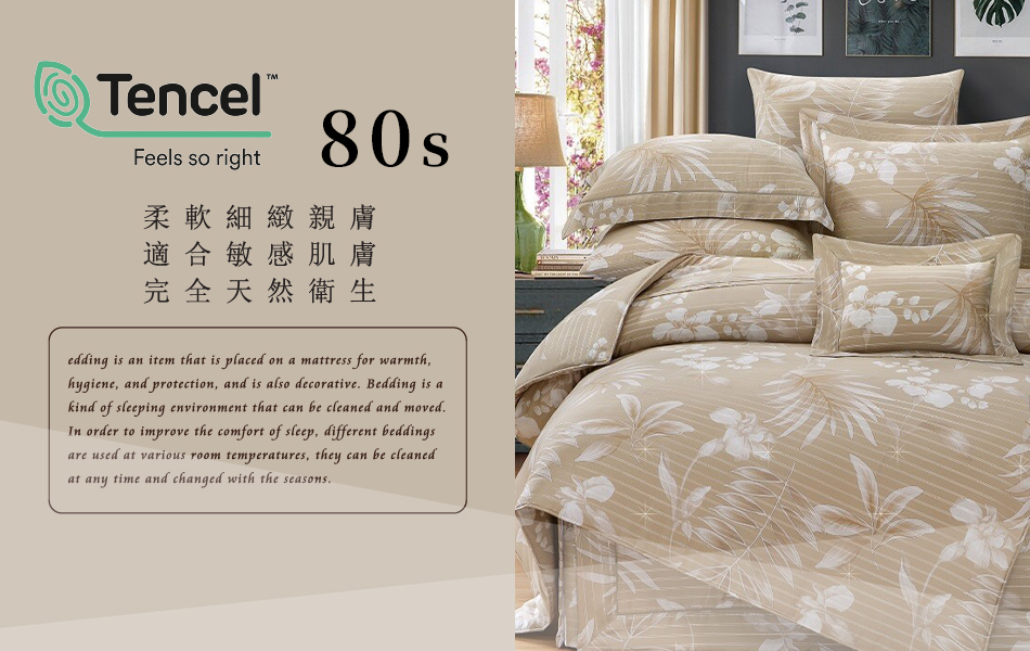 Tencel天絲™萊賽爾纖維製成的 100%80支 【英格麗】 薄床包舖棉兩用被四件式組-80ab