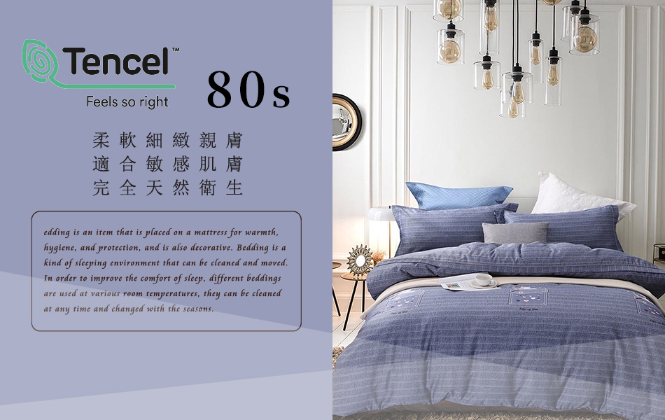 Tencel天絲™萊賽爾纖維製成的 100%80支 【JR-02】 舖棉床罩舖棉兩用被七件式組-80a7