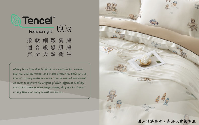 Tencel天絲™萊賽爾纖維製成的 100%60支 【光年航隊】 薄床包舖棉兩用被四件式組