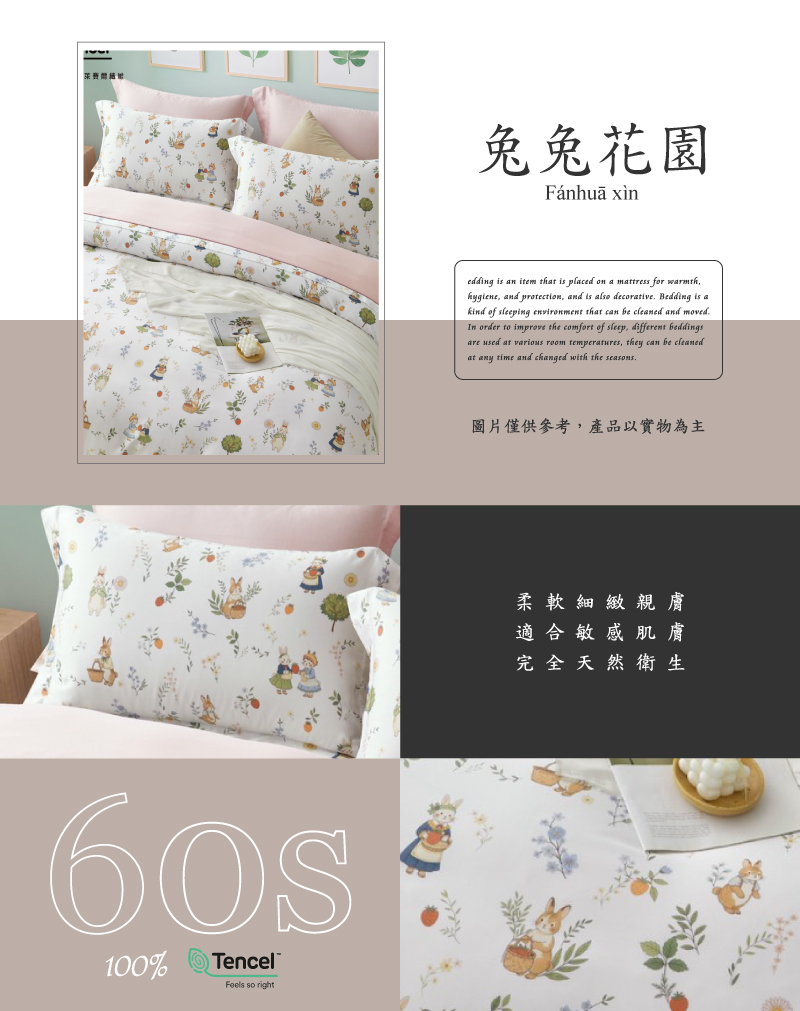 Tencel天絲™萊賽爾纖維製成的 100%60支 【兔兔花園】 舖棉床罩舖棉兩用被七件式組