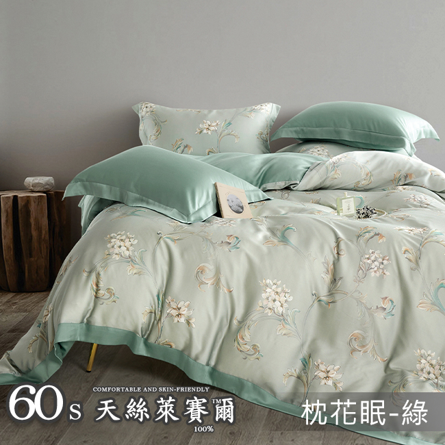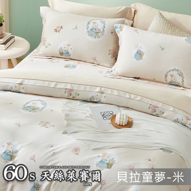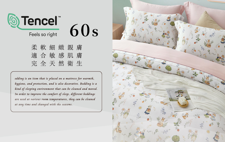 Tencel天絲™萊賽爾纖維製成的 100%60支 【兔兔花園】 薄床包舖棉兩用被四件式組-60ab