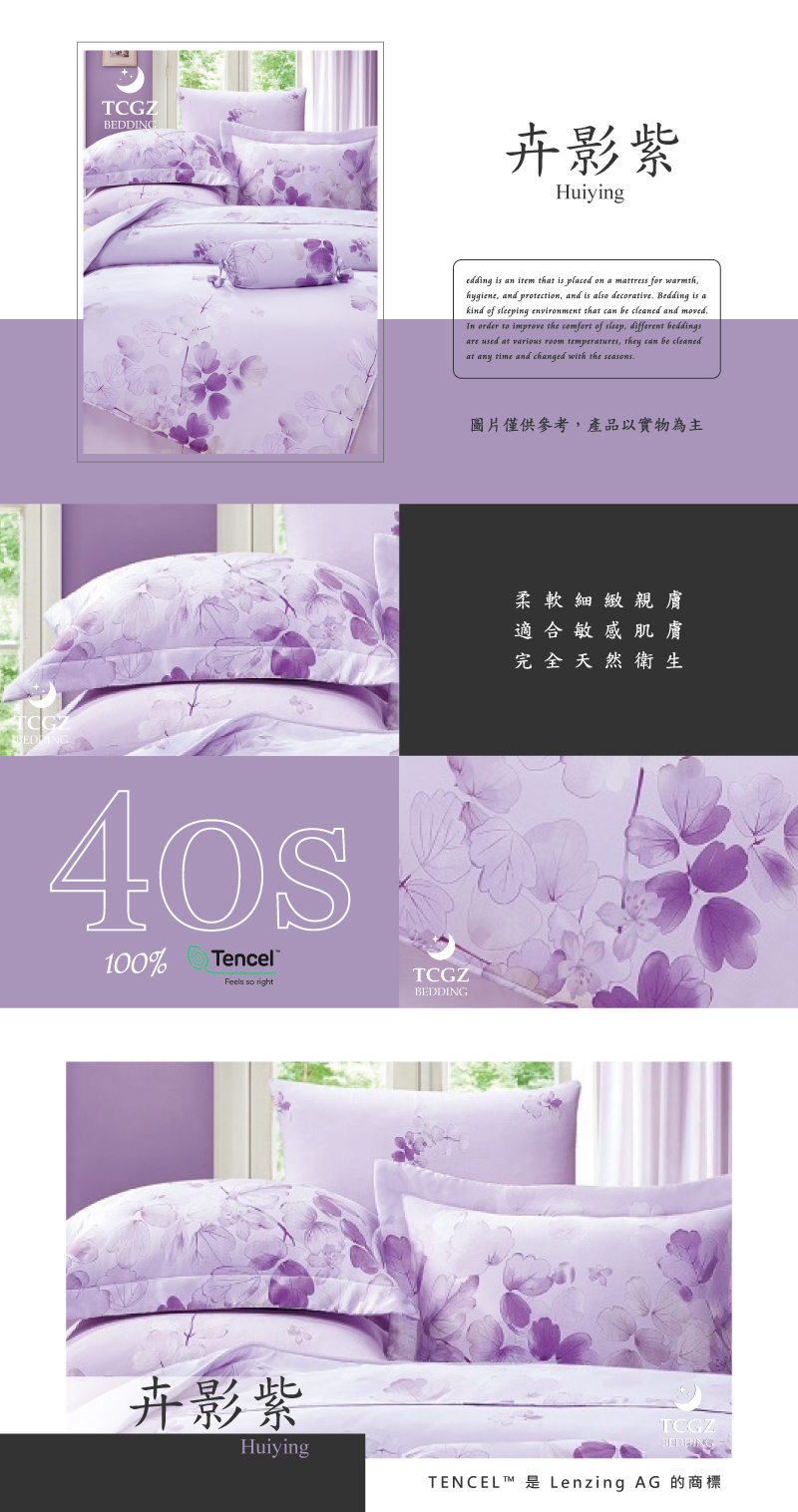 Tencel天絲™萊賽爾纖維製成的 100%40支 【卉影紫】 薄床包舖棉兩用被四件式組