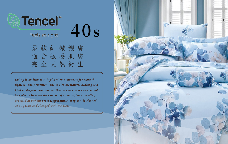 Tencel天絲™萊賽爾纖維製成的 100%40支 【卉影藍】 薄床包舖棉兩用被四件式組-40ab