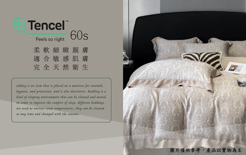 Tencel天絲™萊賽爾纖維製成的 100%60支 【卡曼金】 薄床包舖棉兩用被四件式組