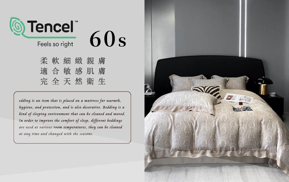 Tencel天絲™萊賽爾纖維製成的 100%60支 【卡曼金】 薄床包舖棉兩用被四件式組-60ab