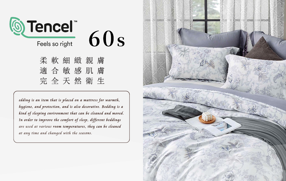 Tencel天絲™萊賽爾纖維製成的 100%60支 【坦佩雷】 鋪棉床包舖棉兩用被四件式組-60aa