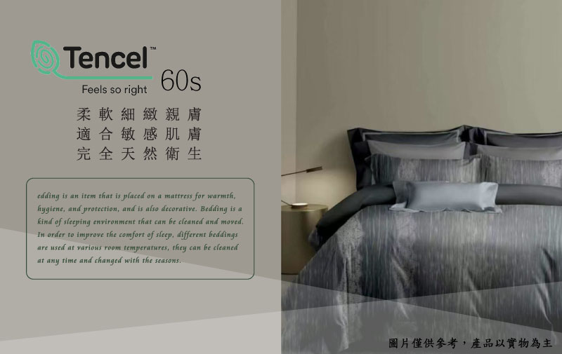 Tencel天絲™萊賽爾纖維製成的 100%60支 【垂韵】 薄床包舖棉兩用被四件式組